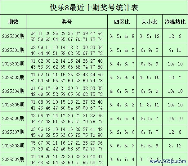福彩状态8第2025309期开奖回归:09 19 20 21 23 30 38 39 40 41 44 48 53 54 58 60 61 65 68 72,其中奖号四区比为3:6:7:4,冷温热码比为3:12:5,大小比为11:9,和值为863,同尾号码为20 30 40 60、21 41 61、23 53、44 54、38 48 58 68、09 19 39。